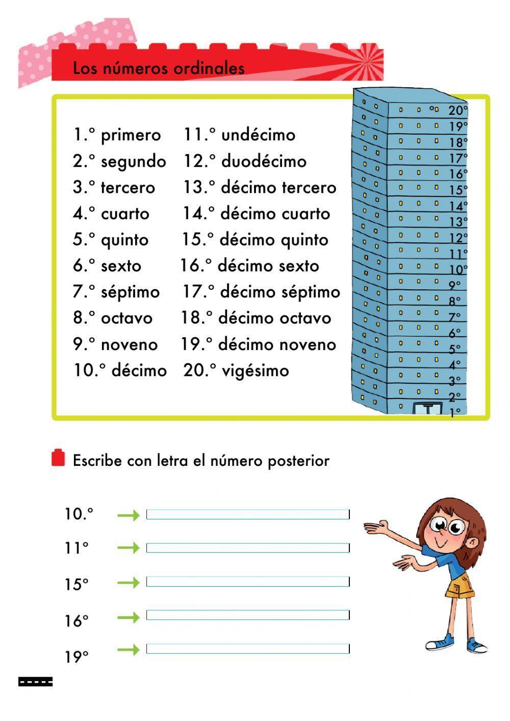 Hoy estudiamos los números ordinales: